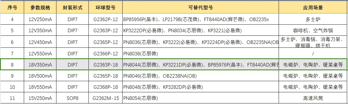 在電源管理領(lǐng)域,非隔離buck芯片扮演著至關(guān)重要的角色,尤其是在小家電市場中。G2363P-18作為一款高性能的非隔離buck芯片,以其18V350mA的輸出能力,廣泛應(yīng)用于電磁爐等設(shè)備。然而,在實(shí)際應(yīng)用中,工程師們可能會尋找替代型號以滿足特定的設(shè)計(jì)需求或成本考慮。以下是G2363P-18的一些可替代型號及其特點(diǎn)分析。