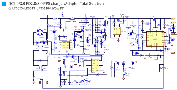 CRM模式PFC+高頻QR:LP6656和LP8843 PWM控制器組合,適合75W至140W大功率PD快充,推薦100W PD。