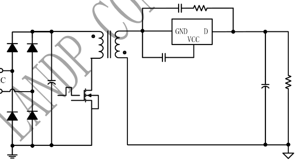 VCC供電:芯片內(nèi)部集成了VCC供電技術(shù),能夠在不需要輔助繞組供電的情況下,保證VCC電壓穩(wěn)定.當(dāng)系統(tǒng)上電后,通過內(nèi)置MOS的體二極管對(duì)輸出電容充電,當(dāng)VCC電壓達(dá)到開啟閾值時(shí),芯片內(nèi)部控制電路開始工作。