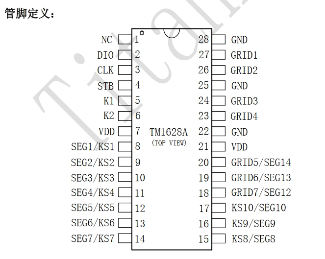 TM1628A天微SOP28封裝 按鍵掃描驅(qū)動(dòng)LED面板顯示驅(qū)動(dòng)芯片