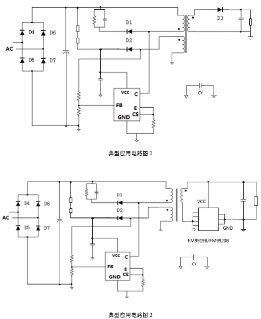 FM3783GA/FM3783GB的典型應(yīng)用電路簡單明了,外圍元件少,便于設(shè)計和調(diào)試。以下是其典型應(yīng)用電路示意圖: