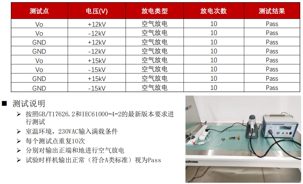 ESD(靜電放電)測試是評估電源芯片抗靜電干擾能力的關(guān)鍵測試。S7142S在ESD測試中表現(xiàn)出色,其輸出端和地端在±12kV和±15kV的空氣放電條件下均能正常工作,符合A類標(biāo)準(zhǔn)。這表明S7142S在抗靜電干擾方面具有卓越的性能,能夠有效保護設(shè)備免受靜電損壞。