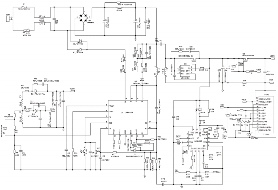 在這一背景下,芯茂微電子憑借其在電源管理芯片領(lǐng)域的深厚技術(shù)積累和創(chuàng)新能力,推出了合封氮化鎵LP88G24DCD的PD65W適配器參考設(shè)計(jì)。這一設(shè)計(jì)充分展現(xiàn)了GaN技術(shù)的優(yōu)勢(shì),同時(shí)也體現(xiàn)了芯茂微電子在電源管理芯片設(shè)計(jì)上的先進(jìn)理念。