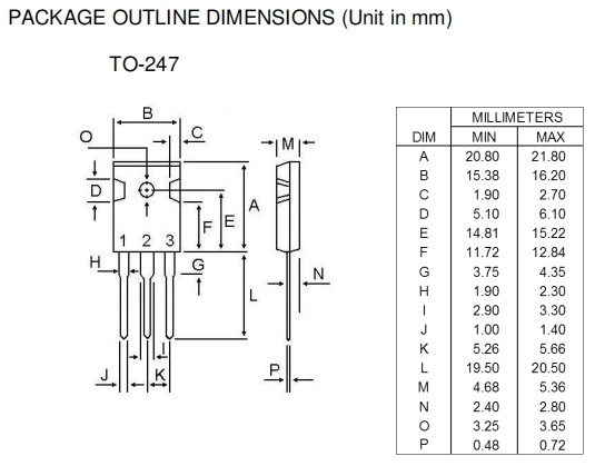 2SA1943采用了TO-247封裝形式,這種封裝形式具有良好的散熱性能和較高的電流承載能力。TO-247封裝通常包括一個(gè)較大的集電極引腳,用于連接散熱器,從而能夠有效地將晶體管工作時(shí)產(chǎn)生的熱量散發(fā)出去,確保晶體管在高功率工作時(shí)的穩(wěn)定性。其封裝尺寸為20.80mm×16.20mm×5.38mm,這種尺寸使得它能夠方便地安裝在各種電路板上,并且可以與其他電子元件進(jìn)行良好的配合。
