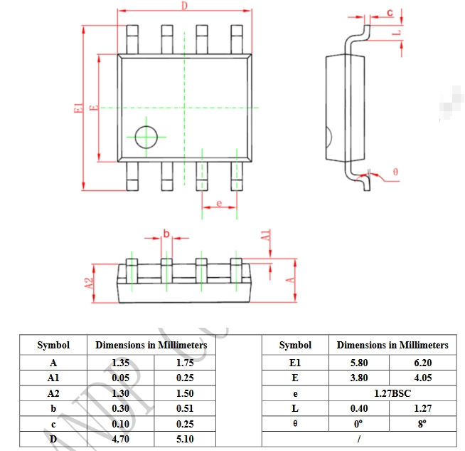 LP3610S 采用 SOP8L 封裝形式,這種封裝不僅尺寸緊湊,而且具有良好的散熱性能和電氣特性。封裝的詳細尺寸信息如下
