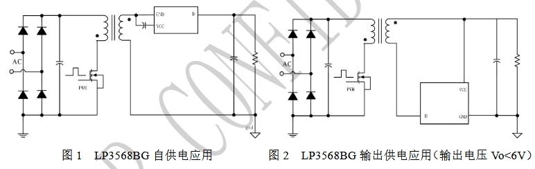 在自供電應(yīng)用中,LP3568BG通過其D腳連接輸出電壓,利用內(nèi)置MOS的體二極管對輸出電容充電,實(shí)現(xiàn)自供電啟動(dòng)。當(dāng)VCC電壓達(dá)到開啟閾值時(shí),芯片內(nèi)部控制電路開始工作,MOS管正常導(dǎo)通和關(guān)斷,電流從MOS管的溝道流過,而非體二極管,從而實(shí)現(xiàn)高效的同步整流。這種應(yīng)用方式適用于需要簡化電路設(shè)計(jì)、減少外部電源依賴的場景。
