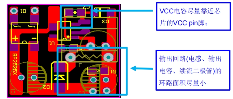 Vout電壓與續(xù)流二極管的正向壓降(Vf)和供電二極管的Vf有關,尤其是重載下,續(xù)流二極管上的壓降損失較多會導致調整率變差。續(xù)流二極管推薦選用GPP工藝、42mil、ES1J超快恢復二極管;Vcc二極管推薦選用M7或A7。