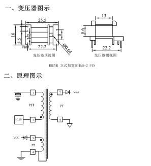 | T1 | EE16 立式 5+2 | — | 自主繞制 | 見(jiàn)下節(jié)變壓器規(guī)格 |