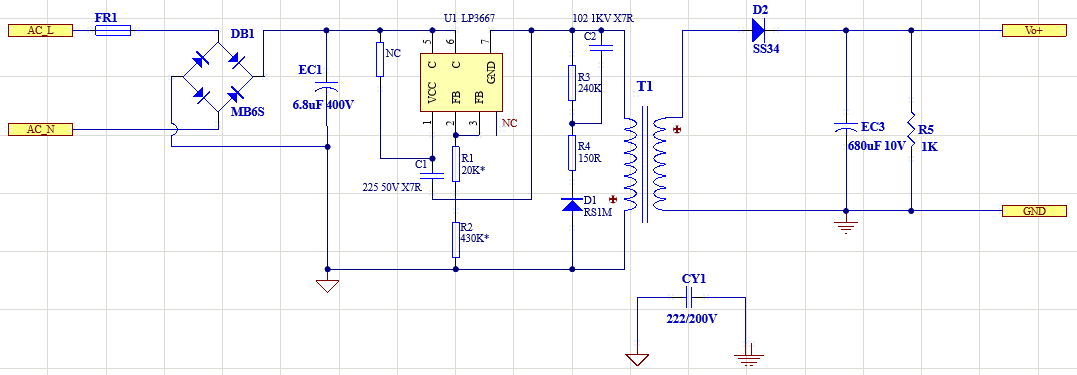 在微型化、低功耗LED照明應(yīng)用中,隔離型輔助電源始終是工程師關(guān)注的重點(diǎn)。深圳三佛科技所代理推出的 LP3667AH 方案,以 2.5W輸出功率、雙繞組結(jié)構(gòu)、極簡(jiǎn)BOM 為特色,成為小功率LED模塊、智能開(kāi)關(guān)、家電指示燈等場(chǎng)景的理想之選。本文將結(jié)合 原理圖、PCB實(shí)物圖、變壓器資料,全面拆解LP3667AH的設(shè)計(jì)亮點(diǎn)與實(shí)戰(zhàn)要點(diǎn)。