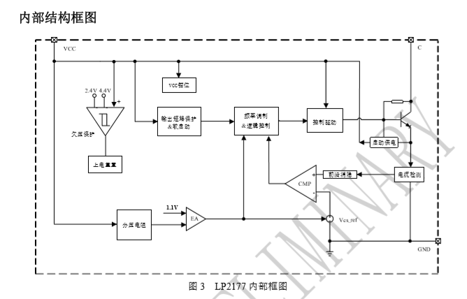 LP2177 內(nèi)部集成高壓功率管,采用恒壓控制模式, 系統(tǒng)可工作于CCM和DCM模式。采用特有的PFM控制方式,改善音頻特性。