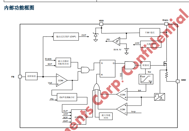 KP3116 集成有完備的帶自恢復(fù)功能的保護功能: VDD 欠壓保護、逐周期電流限制、異常過流保護、輸出過壓保護、過熱保護、過載保護和 VDD 過壓保護等。