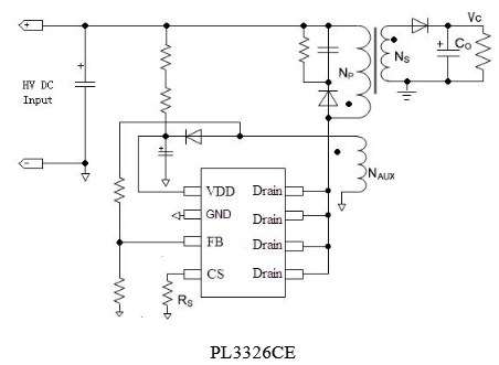 復合模式的應用使得芯片能夠?qū)崿F(xiàn)低靜態(tài)功耗、低音頻噪音、高效率。而且高集成的功率 MOSFET 能夠降低外部 PCB的面積以及系統(tǒng)的成本。PL3326CE 同時具有多種保護功能:逐周期峰值電流檢測、欠壓保護、過壓保護等。