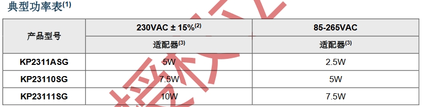 KP23111SG:作為系列中功率最高的型號,它能夠提供10W的輸出功率,在230VAC ± 15%條件下,提供7.5W的功率。這款芯片適用于高功率需求的場景,如大型充電器或電源適配器。